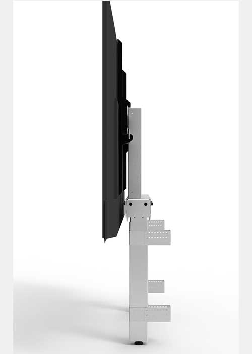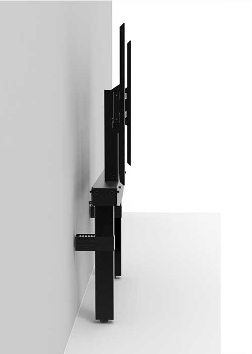 El Soporte de pared EduWall está diseñado para monitores y displays de hasta 86 pulgadas, con una capacidad de carga de hasta 80kg. Incorpora regulación eléctrica de altura de 650 mm mediante motor de doble columna, ofreciendo máxima potencia, estabilidad y precisión en entornos profesionales exigentes.